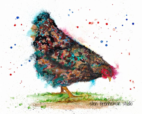 Colorful Chicken Painting Art Print Decor By Ellen Brenneman